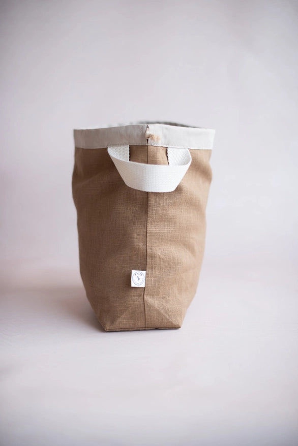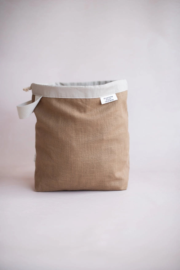 En gennemtænkt projektpose syet i Finland af 100 % naturlige materialer. Tasken er håndlavet i Maxmo, Finland, af syersken Hanna og designet med fokus på funktion og holdbarhed.