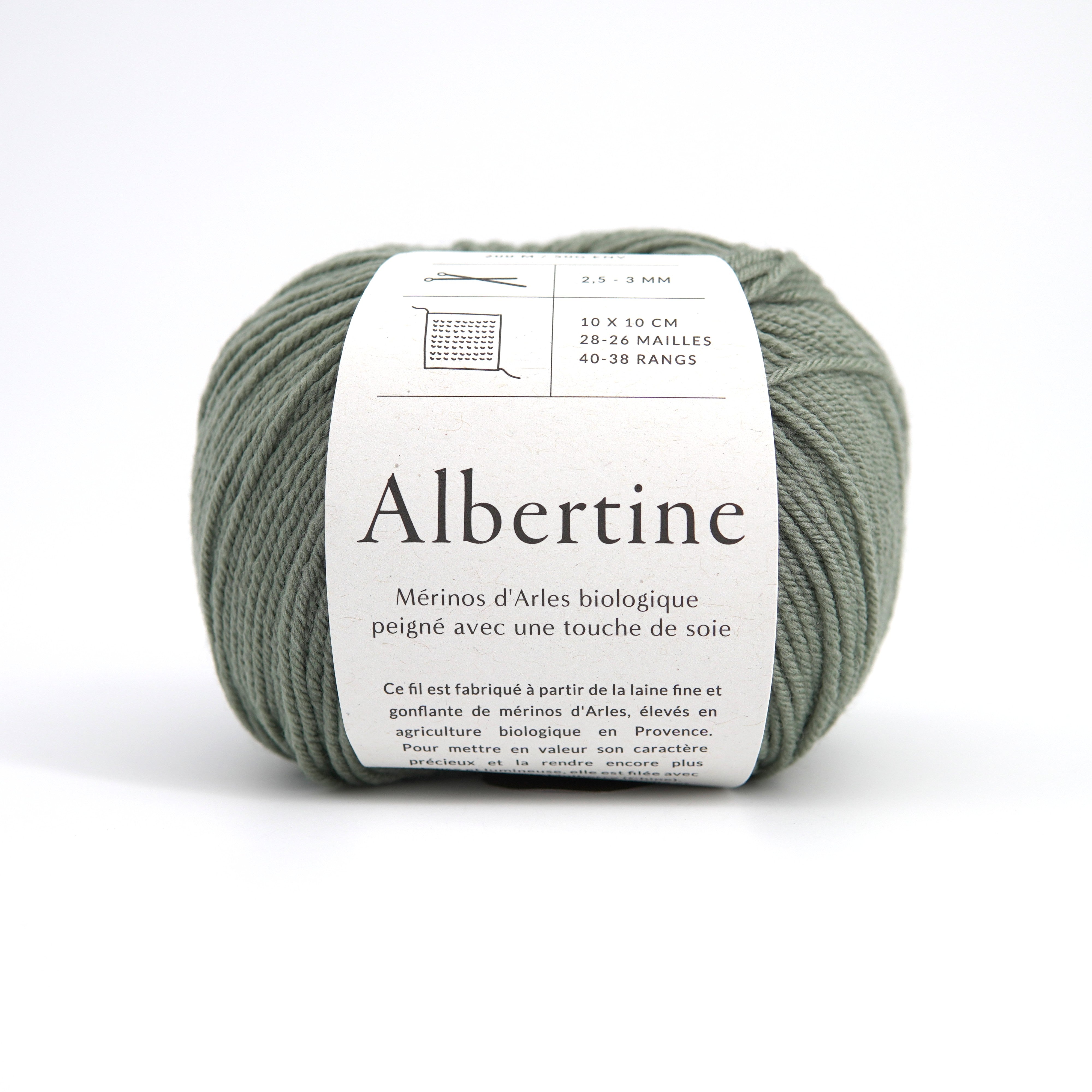 Albertine er et fint, elegant og meget blødt 4-trådet garn, som kombinerer den exceptionelle elasticitet og komfort fra økologisk Merinos d’Arles med et strejf af mulberry-silke. Resultatet er et garn med en rund og veldefineret struktur, en smuk faldende drapering og en diskret, satinagtig glans.