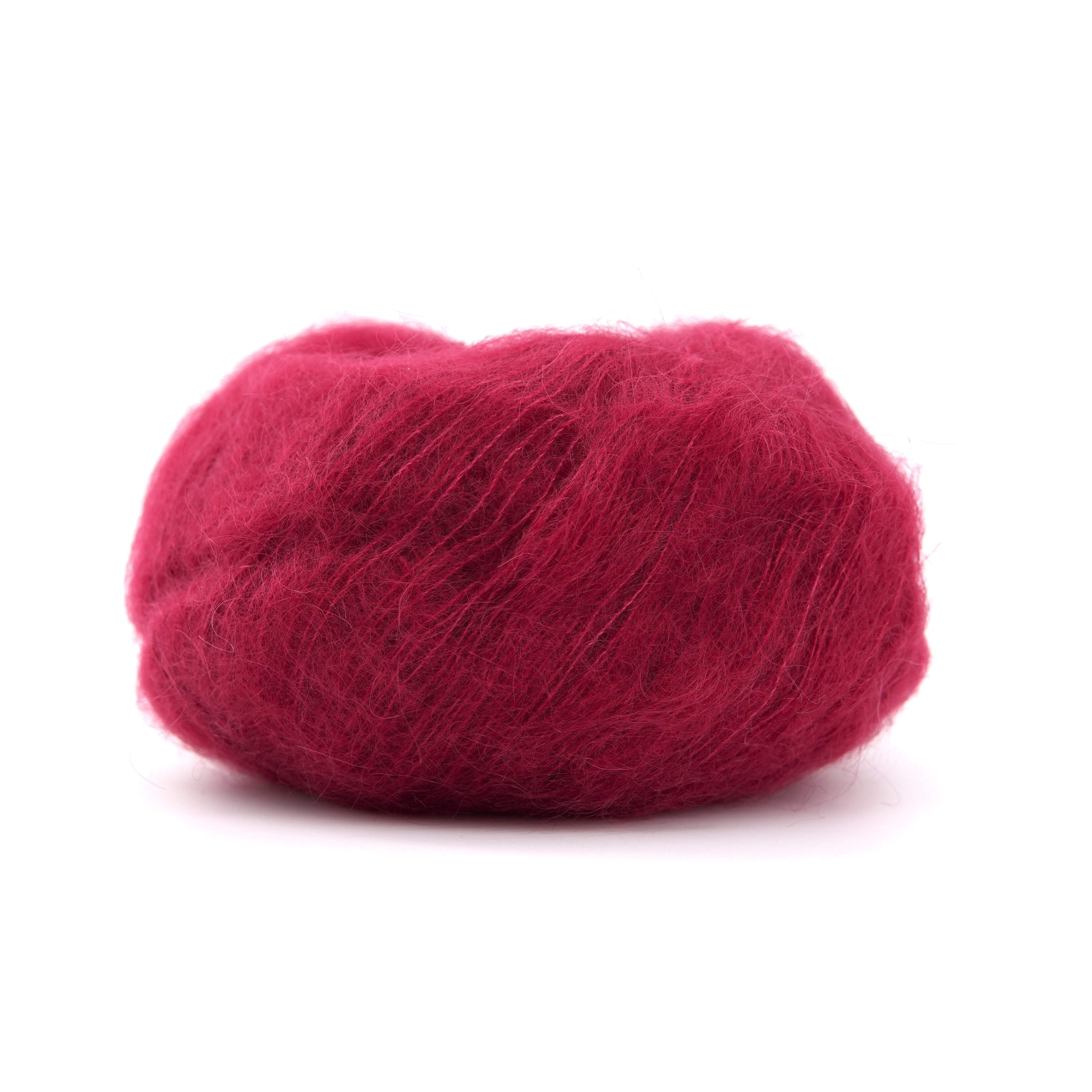 Mohairfibrene stammer fra angorageder i Uruguay og er blandt de fineste kvaliteter der findes. Merinoen tilfører ekstra blødhed, mens en kerne af mulberry-silke giver styrke og et diskret, elegant skær. Sammen skaber fibrene et garn med en smuk halo og et levende, men roligt udtryk.